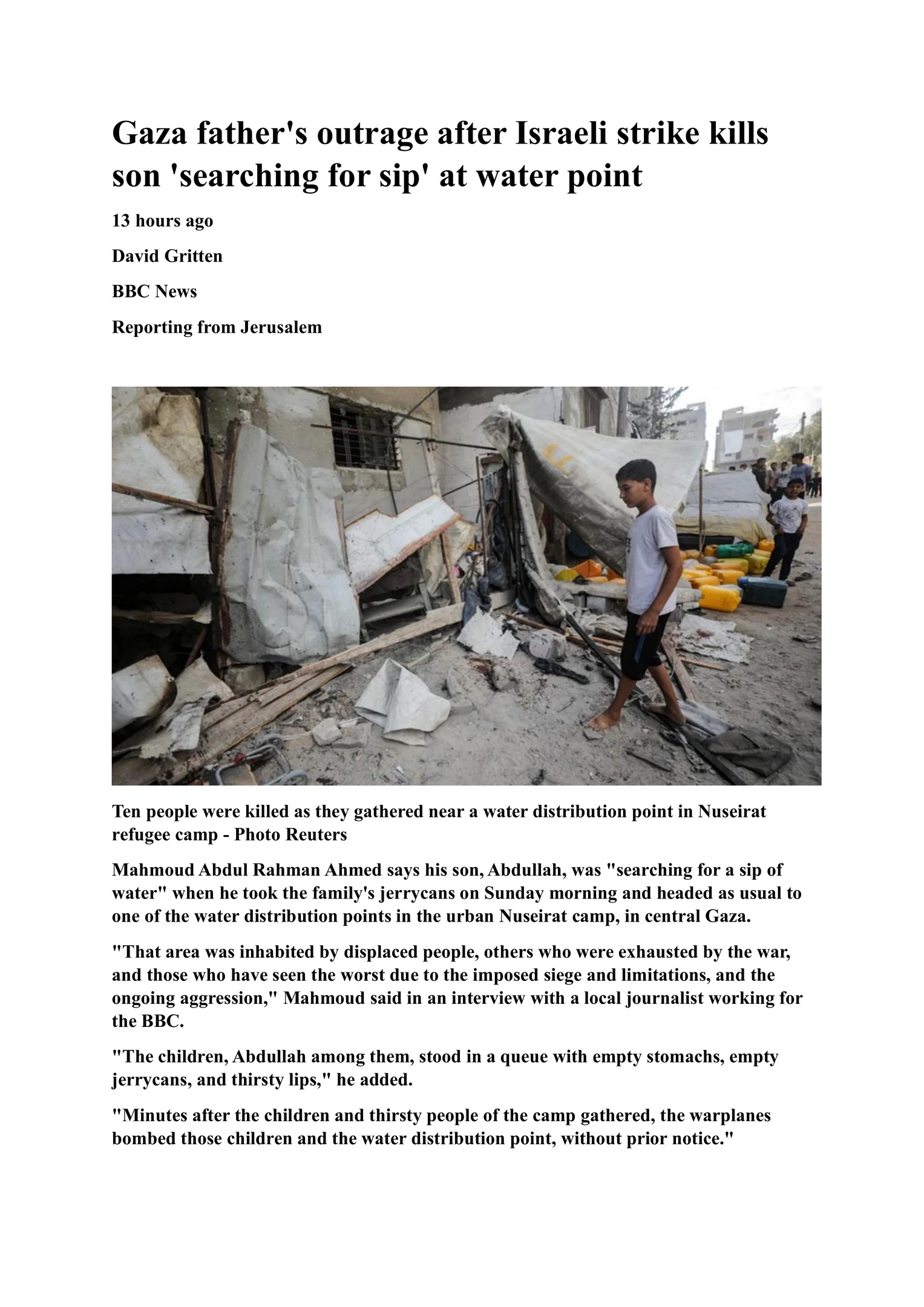 GAZA FATHER'S OUTRAGE AFTER ISRAELI STRIKE KILLS SON: BBC NEWS - 1