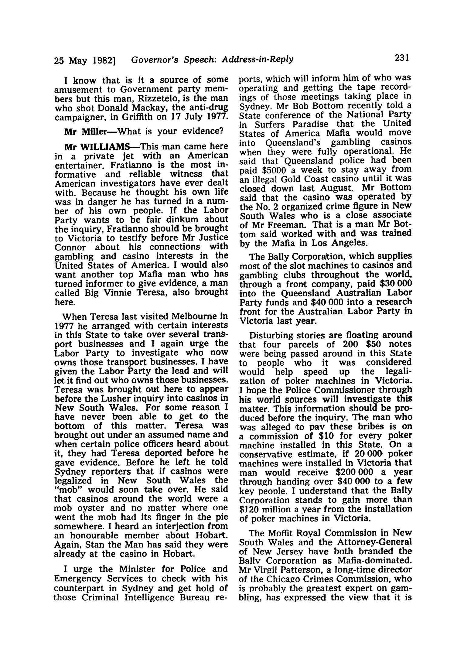 MORRIS WILLIAMS SPEECH IN VICTORIAN PARLIAMENT LEGISLATIVE ASSEMBLY: HANSARD 25 MAY 1982 - 4