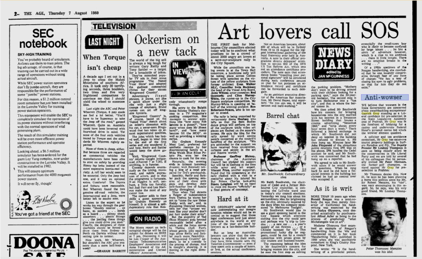 THE AGE 07 AUGUST 1980 NEWS DIARY 'ANTI-WOWSER' - 1