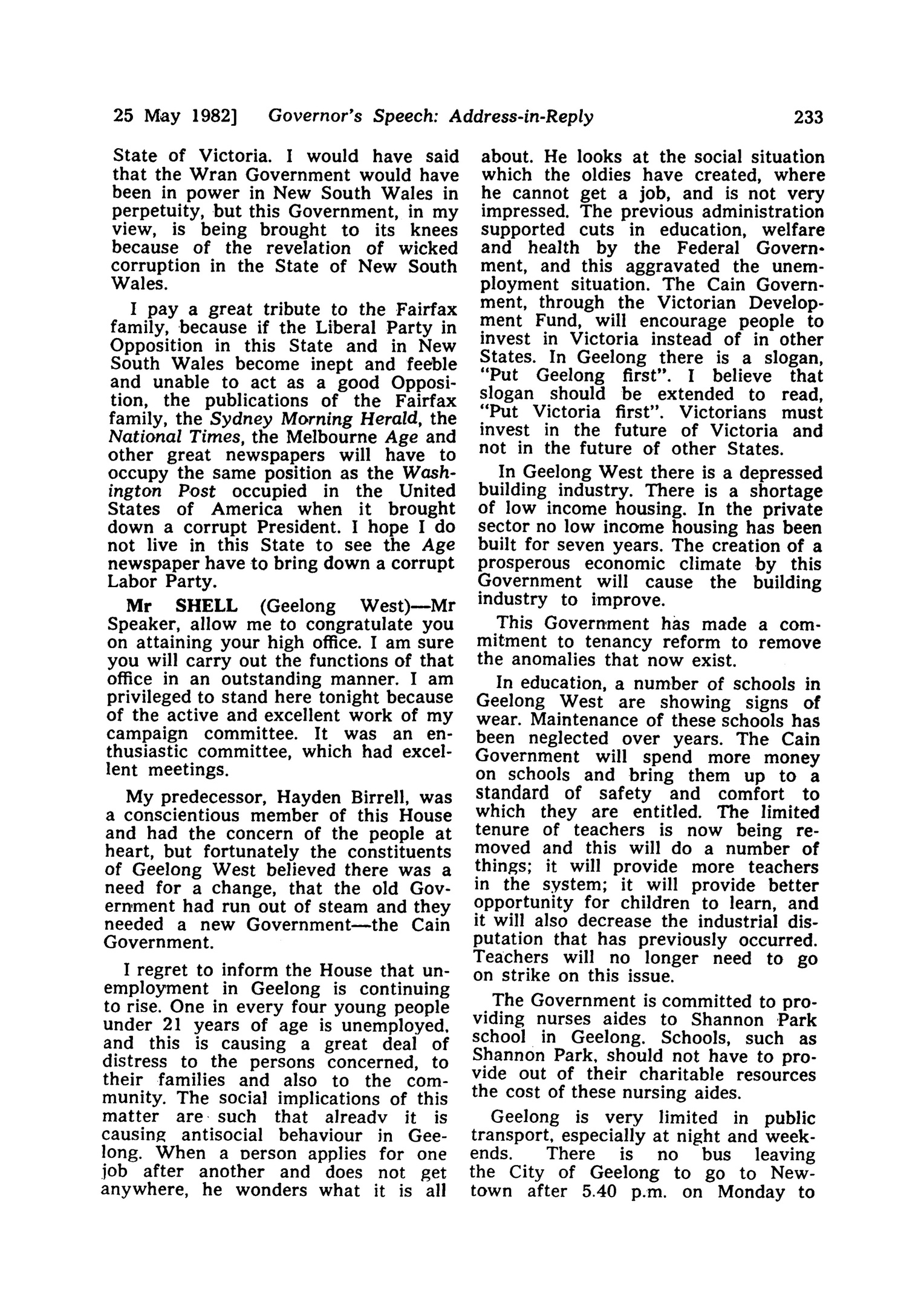 MORRIS WILLIAMS SPEECH IN VICTORIAN PARLIAMENT LEGISLATIVE ASSEMBLY: HANSARD 25 MAY 1982 - 3