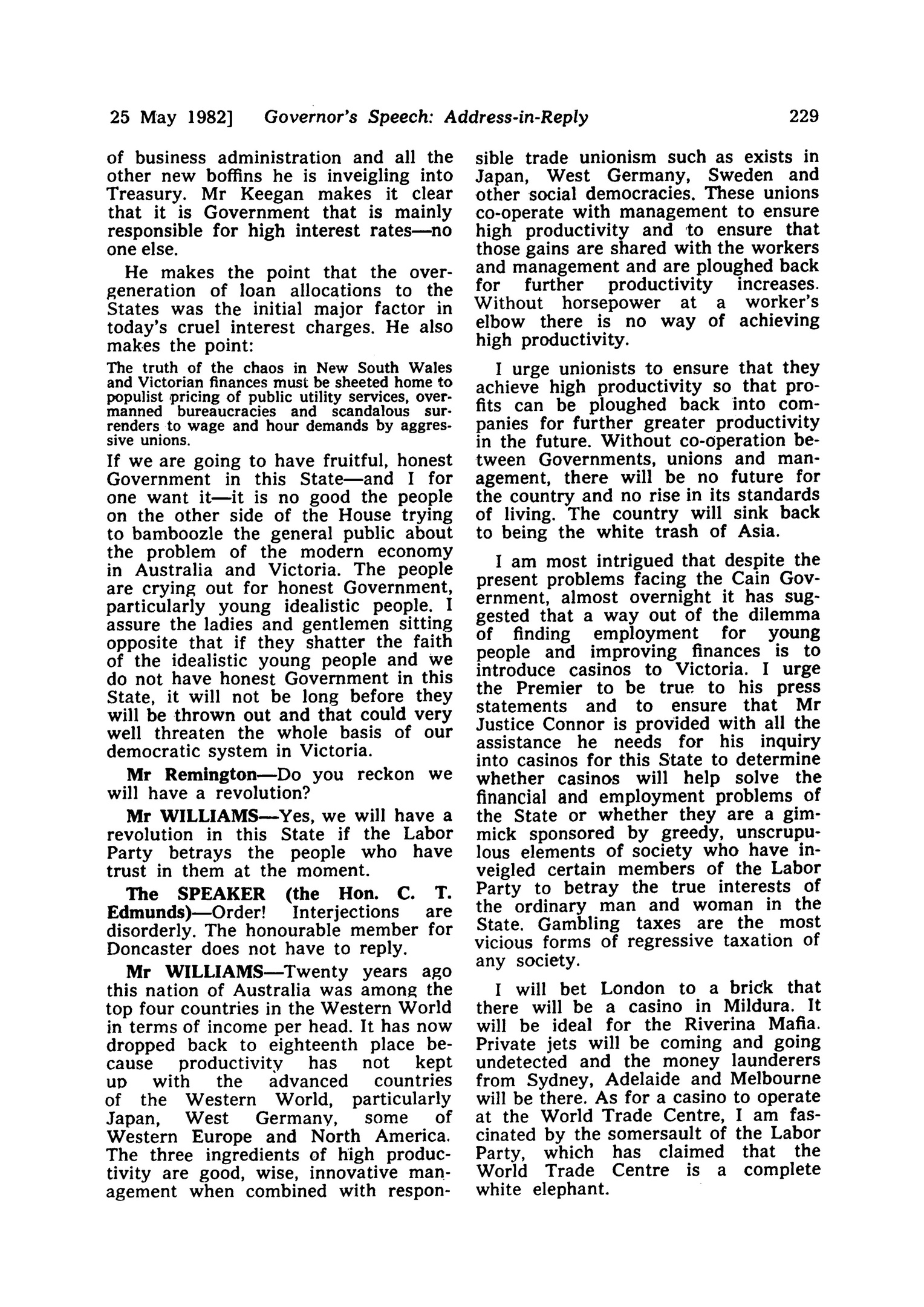MORRIS WILLIAMS SPEECH IN VICTORIAN PARLIAMENT LEGISLATIVE ASSEMBLY: HANSARD 25 MAY 1982 - 1
